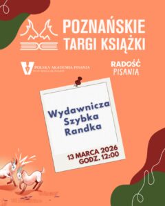„Wydawnicza szybka randka – kiedy autor spotyka wydawcę” to wspólna inicjatywa Polskiej Akademii Pisania, Magdaleny Genow, konsultantki wydawniczej i mentorki pisarzy, oraz Poznańskich Targów Książki. Razem pomożemy Ci znaleźć wymarzone wydawnictwo.